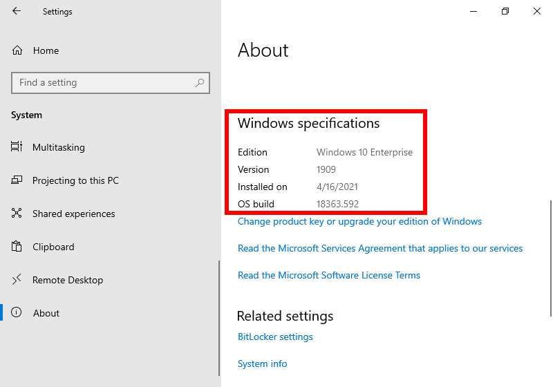 After this, you're done! If you want to check to see if you're Windows is activated, open settings again and select "System." Scroll down and click "About" at the left. Under "Windows specifactions," it should show the version Windows is activated with.