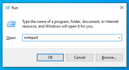 Open Notepad by pushing the 'Windows Key' + R, then typing "notepad" in the Run box, followed by pressing 'Enter.'