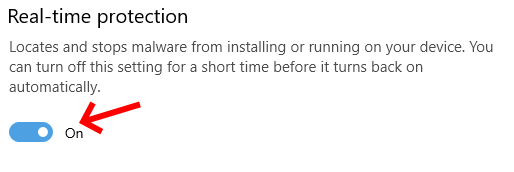 Uncheck the "Real-time protection" option. A User Account Control window will popup here, so click yes.