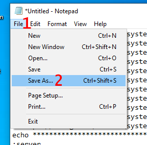 Save this script as a batch file by setting the 'Save as type' to 'All files' instead of (.txt)
